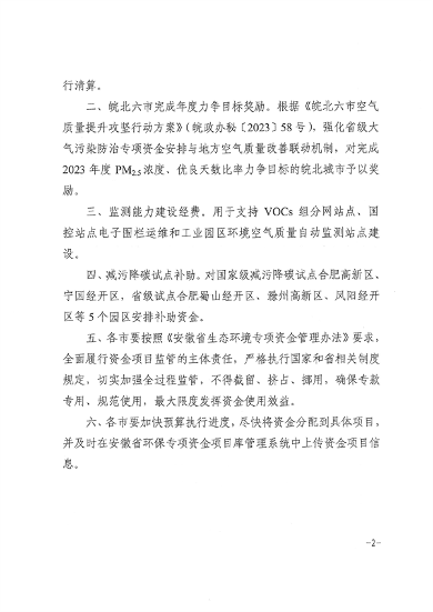 安徽省关于下达2024年第二批省级大气污染防治专项资金的通知 日期: 2026-03-04 06:15 栏目:最新资讯 浏览: 安徽省生态环境厅官方网站发布安徽省财政厅 安徽省生态环境厅关于下达2024年第二批省级大气污染防治专项资金的通知,本次下达包括2023年度环境空气质量生态补偿激励、监测能力建设经费等在内的资金共计5000万元。 标签: 上一篇:《四川省城市建筑垃圾处置及资源化利用两年行动方案(2024— 下一篇:《上海市2024年环境监管重点单位名录》发布 相关推荐 陕西省14部门联合印发《陕西省消费品以旧换新实施方案》! 《广东省生态环境领域“双随机、一公开”监管2024年度抽查计划》发布 贵州:关于进一步提升危险废物全过程信息化和规范化环境管理有关工作的通知 大连市推动大规模设备更新和消费品以旧换新行动实施方案