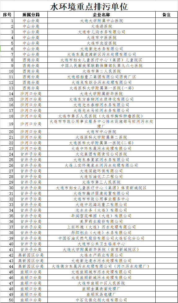 《大连市2024年环境监管重点单位名录》发布! 日期: 2026-03-04 06:15 栏目:最新资讯 浏览: 近日,大连市生态环境局公布《大连市2024年环境监管重点单位名录》,详情如下: 标签: 上一篇:《上海市2024年环境监管重点单位名录》发布 下一篇:103条黑臭水体!江苏2024年全省农村环境整治工作计划! 相关推荐 陕西省14部门联合印发《陕西省消费品以旧换新实施方案》! 《广东省生态环境领域“双随机、一公开”监管2024年度抽查计划》发布 贵州:关于进一步提升危险废物全过程信息化和规范化环境管理有关工作的通知 大连市推动大规模设备更新和消费品以旧换新行动实施方案